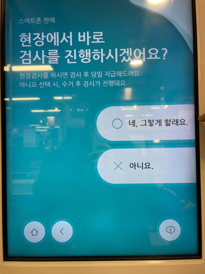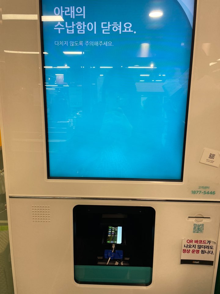 저희 동네는 이마트 들어가는 입구에 설치되어있었어요. 진짜 자동문 바로 앞이라서..... 핸드폰 판매 등록하는 내내 자동문이 계속 열렸다 닫혔다....ㅋㅋㅋ그건 좀 불편하더라고요.