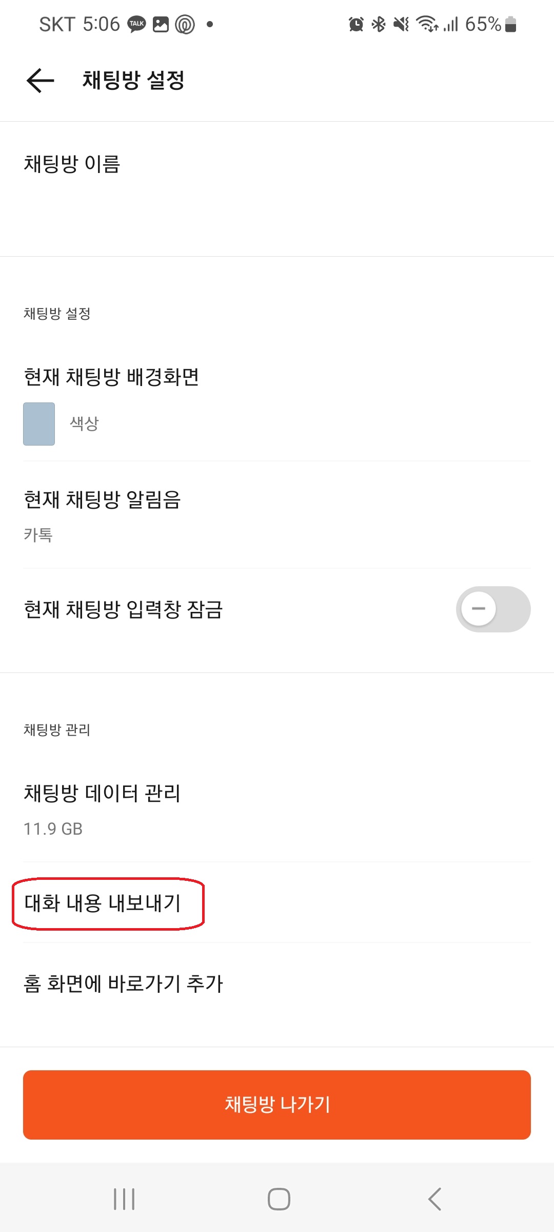 🔹 채팅 내보내기 방법